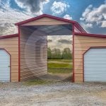 As with all of Carport Central’s custom metal buildings, our barns can be fully customized! We offer three roof styles- regular (horse barns), A-frame, and vertical, with several color options to choose from. The structural dimensions of all the barns can be customized to fit your storage needs as well as your budget. Some of the commonly used customizations include an open carport lean-to, one with its center closed and lean-to open, fully enclosed or the most popular one – the center open and lean-tos closed. The width of lean-tos usually starts at 12′ but can vary depending on the needs of our customers. The available lengths of metal barn buildings with lean-tos range from 21′, 26′, 31′, 36′,41′, 46’ all the way up to 51’ long, if needed, you can go longer than 51′. It’s simply a matter of connecting two lean-to buildings end to end, an end-to-end connection reduces the building length by one foot as the connection overlaps half a foot on each side. We can also install custom windows and doors, or if you’d like to do that yourself, we’ll at least create the frame for you. For the doors, we can install either a roll-up or electric door; however, electric doors vary by location. You can contact one of our friendly building specialists today at (336) 296-3053 to talk about your custom metal barn options and see what we can do for you to get started on installing a beautiful, new building!