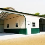 Most farm owners want a semi-enclosed steel building that allows their horses to wander in and out without restrictions. These horse owners are the ones that usually look at our lean-to options when they want a metal barn to keep their horses in a field without letting them wander too far or being confined. During harsh weather, the animals can go inside for shelter while they can also be outside during beautiful weather. A metal barn is cost-effective and doesn’t require a lot of time and maintenance!